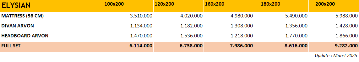 | Ukuran | 100×200, 120×200, 160×200, 180×200, 200×200 |