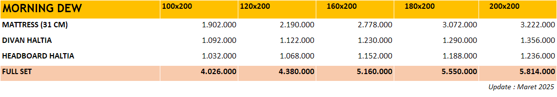 Bayangkan pagi yang dimulai dari embun sejuk yang menyapa Anda. Tidur malam Anda kini dimulai dari Procella Morning Dew Springbed, tempat di mana tubuh menemukan ketenangan dan pikiran menyambut pagi dengan segar.
