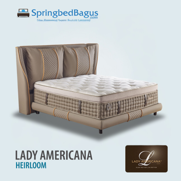 Spring Bed Lady Americana Heirloom adalah lini kasur dengan desain mewah yang diproduksi oleh Lady Americana sampai saat ini, dengan kemewahan yang glamour untuk mendapatkan kenyamanan tidur dengan busa yang dilapisi kain jacquard yang halus dan lembut, siap memanjakan tubuh Anda.