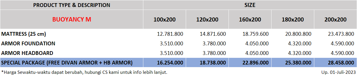 Informasi Produk tipe Buoyancy M dari Therapedic Indonesia.