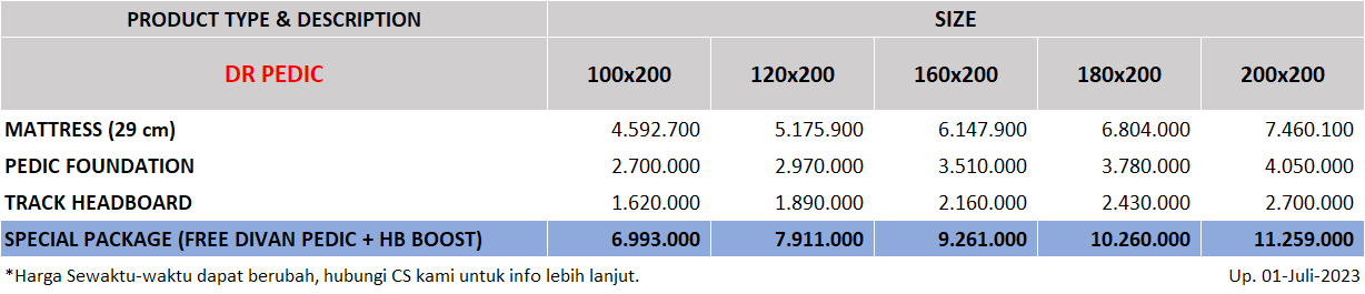 Informasi Produk tipe DR. Pedic dari Therapedic Indonesia.